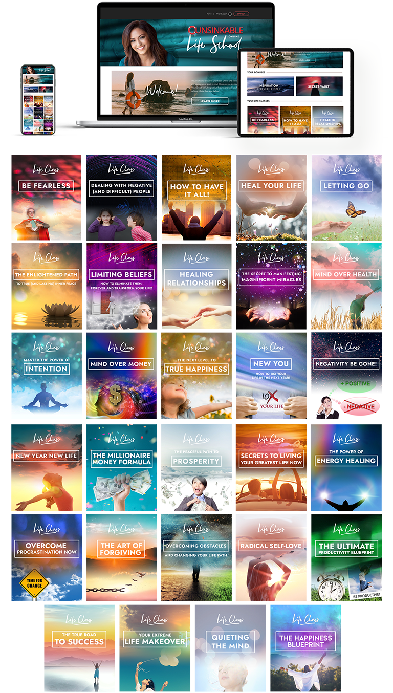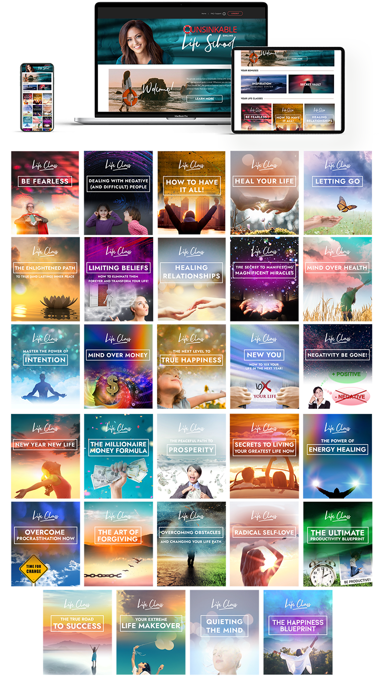 The Unsinkable Online Life School is the place where Sonia Ricotti teaches her LIFE CLASSES to help YOU bounce back BIG, turn your life around FAST and live your GREATEST life!